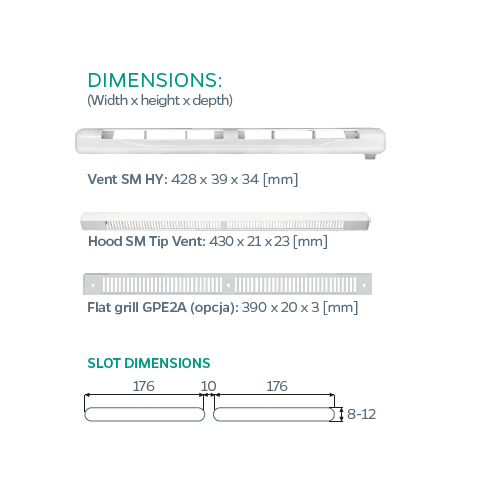 Az SM HY egy energiatakarékos, páratartalom érzékelős (higroszabályozású) nyílászáróba építhető légbevezető, amely a helyiség aktuális páratartalmához igazítja a beáramló levegő mennyiségét – segédenergia nélkül. Három állítási lehetősége (automatikus páraszabályozott, nyitott, zárt) van. Vízszintes befúvásával komfortos, huzatmentes levegőbeáramlást tesz lehetővé. Lakó-, iroda- és közösségi épületek (pl. iskolák, kórházak) szellőző rendszereiben egyaránt alkalmazható, és esztétikusan illeszthető a nyílászárókhoz – külső esővédővel vagy lapos ráccsal kombinálva.