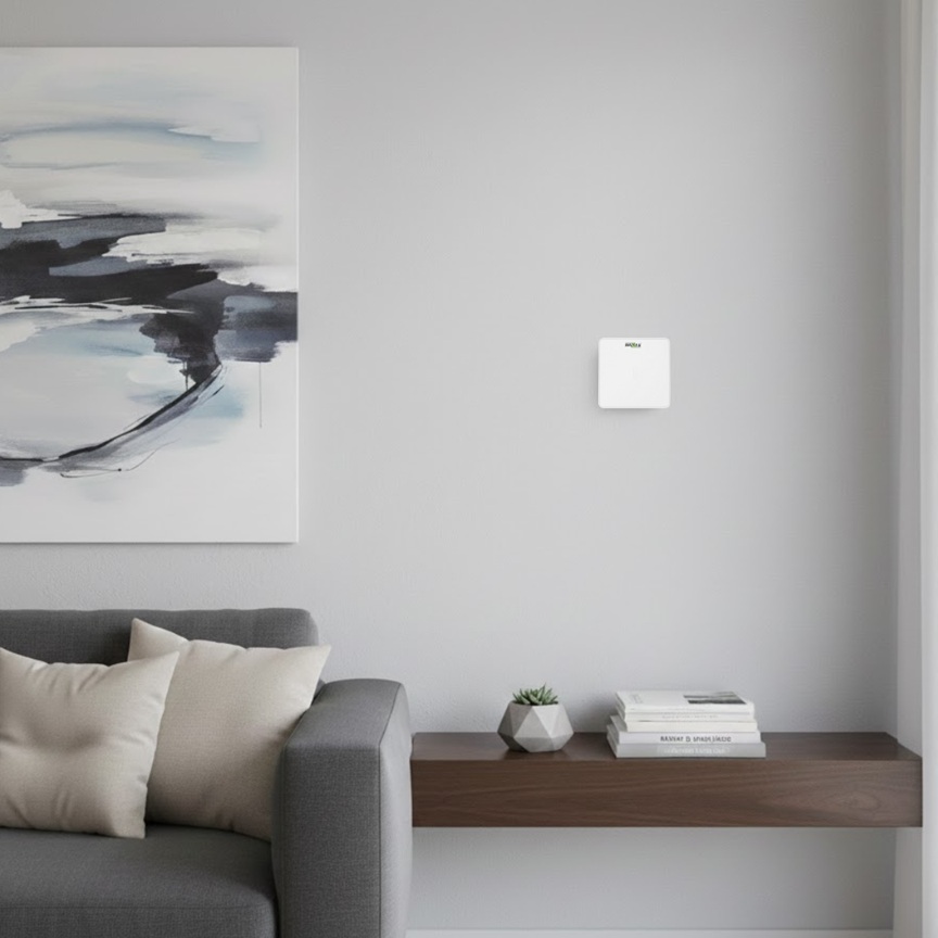 Kompakt méreteinek és klasszikus kialakításának köszönhetően a maxiControl tökéletesen illeszkedik bármilyen belső térbe, miközben diszkrét és funkcionális marad. Pontos és vezeték nélküli páratartalom- és hőmérsékletmérés, akár 3 érzékelő támogatása egyetlen hővisszanyerős szellőző berendezéshez.