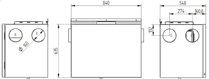 Korszerű EC ventilátorok és szigetelt ház biztosítják az alacsony zajszintet.