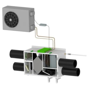 A WANAS COMBO hővisszanyerő egység felszerelhető egy olyan egységgel, amely jelentősen kibővíti funkcionalitását azáltal, hogy lehetővé teszi a beltéri hőmérséklet hatékony kezelését. Az egység kiegészítő fűtési vagy hűtési forrásként működik, biztosítva az optimális hőmérséklet-szabályozást, különösen szélsőséges időjárási körülmények között. A szellőztetőrendszerrel való integráció lehetővé teszi a gyors alkalmazkodást a változó körülményekhez, biztosítva a kényelmet és az energiamegtakarítást egész évben.